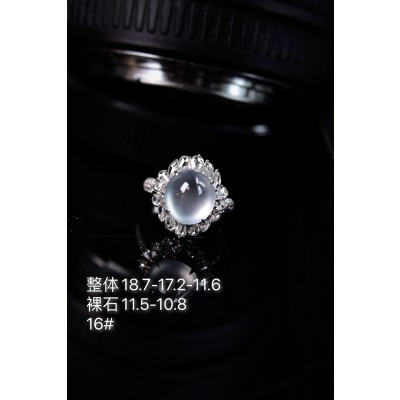 Emerald ring, 18k gold egg face ring, large diamond setting, overall: 18.7-17.2-11.6, bare stone: 11.5-10.8