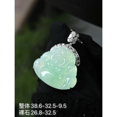 Jade pendant, 18k gold inlaid Buddha pendant, overall: 38.6-32.5-9.5, bare stone: 26.8-32.5